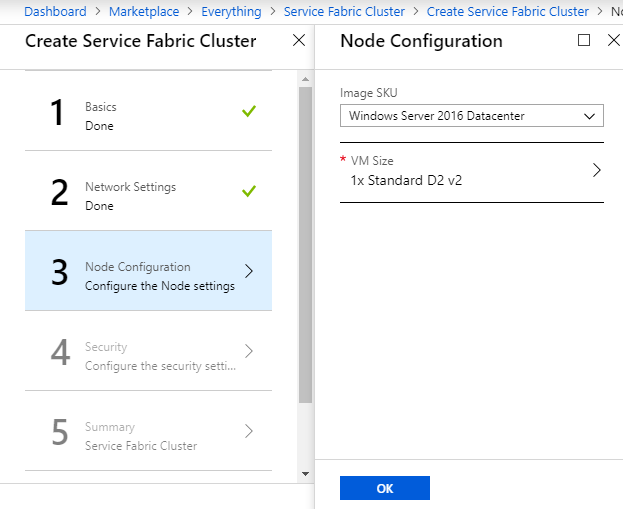 - Complete the wizard, and then select Create to deploy the Service Fabric Cluster.