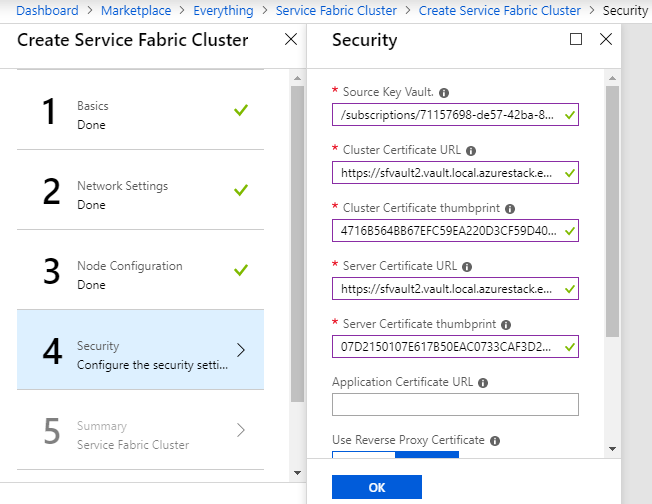 The goal of this post to help fill in the gaps from the Microsoft Azure Stack User Documentation on deploying a secured service fabric cluster using the Azure Stack Developer Kit (ASDK). The same steps could easily be used on the Azure Stack integrated system.