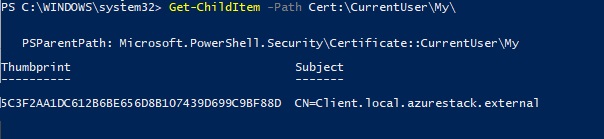 New-SelfSignedCertificate -DnsName servicefabricclient.local.azurestack.external -CertStoreLocation Cert:\CurrentUser\My\