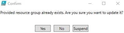- Since the resource group was created by the previous script, you will receive a prompt to update the existing resource group. When prompted, click yes.
