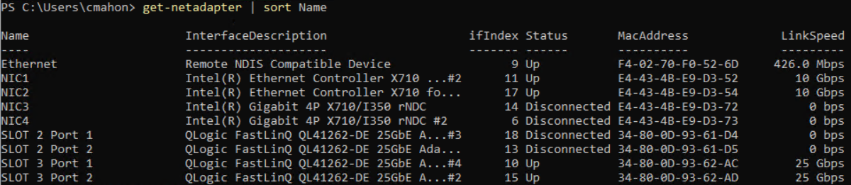 NetAdapterNamesAsList : {SLOT 3 Port 1, SLOT 3 Port 2}