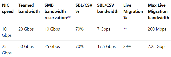 SMB Bandwidth Limit for VM live migration will be set automatically. The current value can be verified by running the following:$nodes = (Get-ClusterNode).Name