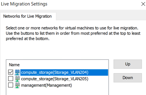 Now, if I unselect one of those storage networks to use for live migration, it begins working again: